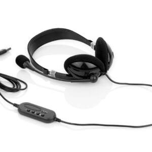 Audífono manos libres con diadema ideal para el estudio, la oficina o videojuegos. Puerto USB y control para realizar fácilmente las funciones de bajar o subir el volumen. Permite silenciar la recepción y la salida del audio, luz indicadora de silencio. Impedancia: 32Ω, Sensibilidad: 115dB, Nivel de ruido: ≤0. 1%, Rango Dinámico: ≥ 78dBA, Distorsión: THD ≤0. 1%, Diafonía: ≤ 52 dBA