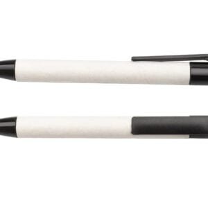 Lapicero elaborado en material recuperado de cajas Tetra Pak. Clip y punta plásticos. Sistema retráctil.