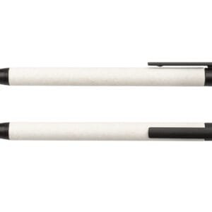 Lapicero elaborado en material recuperado de cajas Tetra Pak. Clip y punta plásticos. Sistema retráctil.