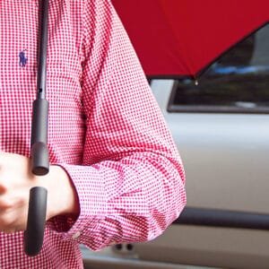 Paraguas en 2 tonos reversible, 8 cascos, costillas en metal y fibra de vidrio, vara metálica, tela en Pongee con cinta para cierre con velcro, mango tipo C con acabado en goma que permite ser usado como manos libres. Gracias a su mecanísmo de plegado inverso, es capaz de contener el exceso de agua.